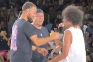中国U19男篮小将朱正晒与库里参与活动的视频:还是感觉梦里一样